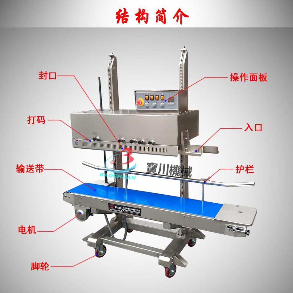 该系列封口机采用电子恒温控制和无级调速传动系统,具有自动连续封口、印刷产品标签、一次完成之功能,并可卧、立落地使用。用于单层薄膜及各种复合薄膜的封口、制袋,广泛应用在食品、制药、种子、化工、轻工等部门。